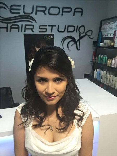 At Europa Hair Studio, we want you to feel confident and beautiful on your big day. That's why we offer a free hair trial for the bride to give you the opportunity to try out different styles and ensure that you're happy with the final result. The hourly rate is charged for all other salon trials. There will be a full-service charge if you want to walk out the same day with hair, makeup, or any other service completed by a Europa Hair Studio stylist. A $50 deposit will be required to book the final appointment for the actual service (not the free trial). Appointments must be canceled within 48 hours. For more information and to book your wedding hair salon package, please call our Wedding Hair Salon consultant at (305) 720-2277. We look forward to helping you create your dream wedding look!
